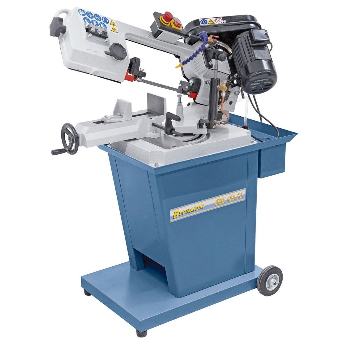 Az EBS 128 CL fémszalagfűrész - a bevált EBS 128 C-hez képest - alapkivitelben hűtőfolyadék-rendszerrel felszerelt.